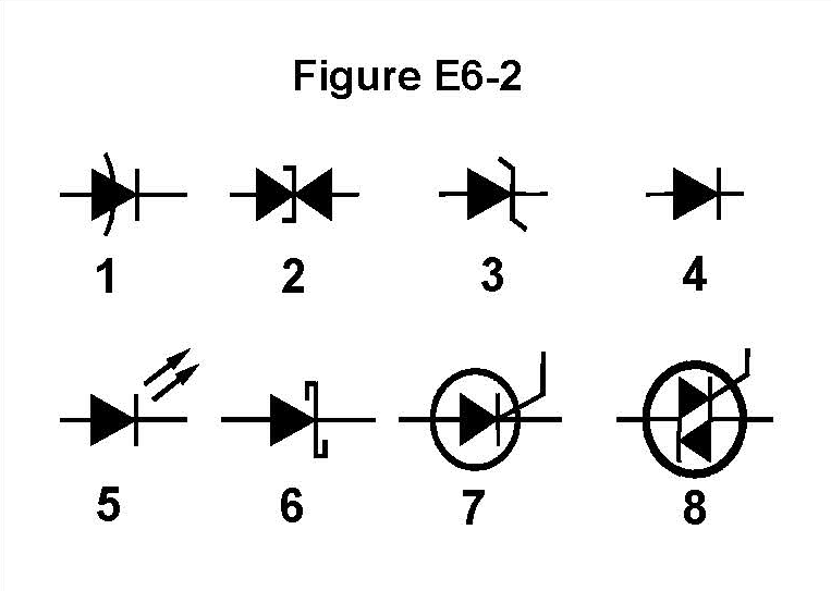 In Figure E6-2, which is the schematic symbol for a Schottky diode?