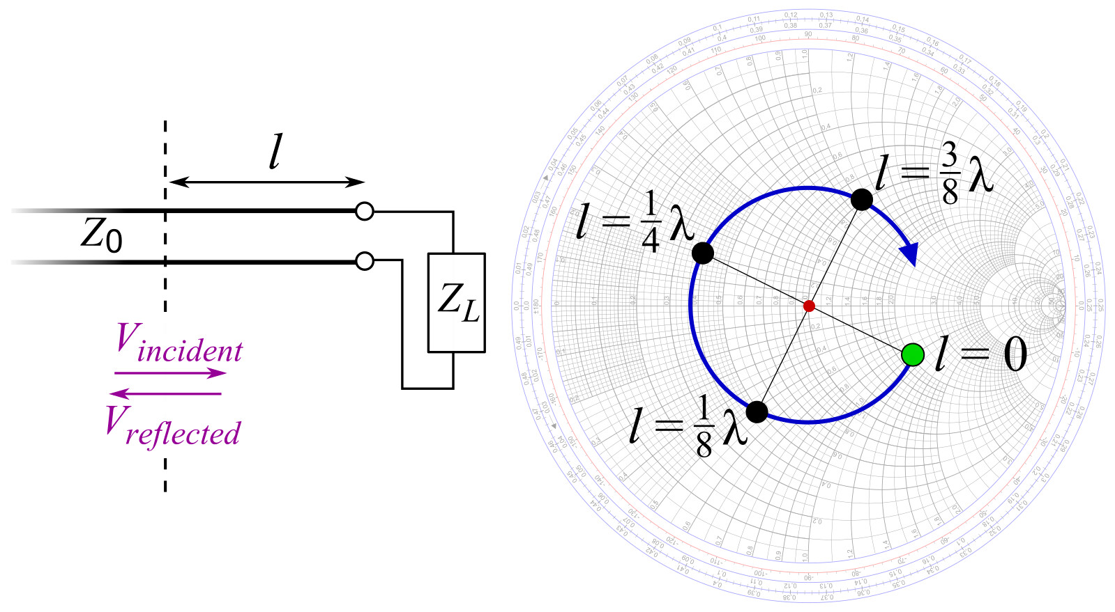 - B) Transmission line length circles