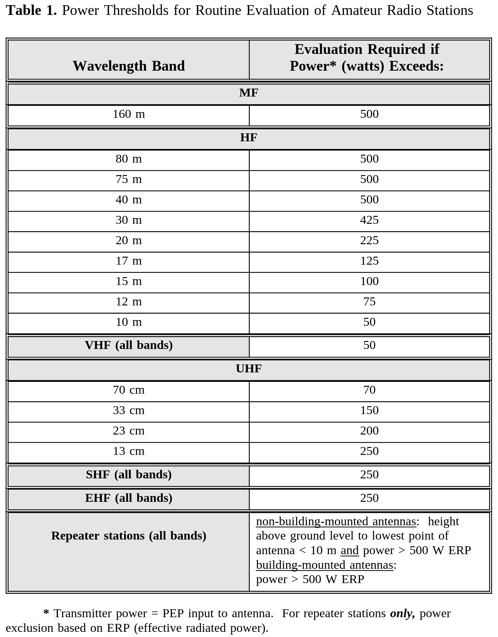The FCC rules regarding RF exposure apply to all services, including amateur radio. 47 CFR §1.1307(b)(3)(i) establishes power thresholds below which a routine environmental evaluation is not required (the exemption criteria). This is defined at the input power to the antenna.